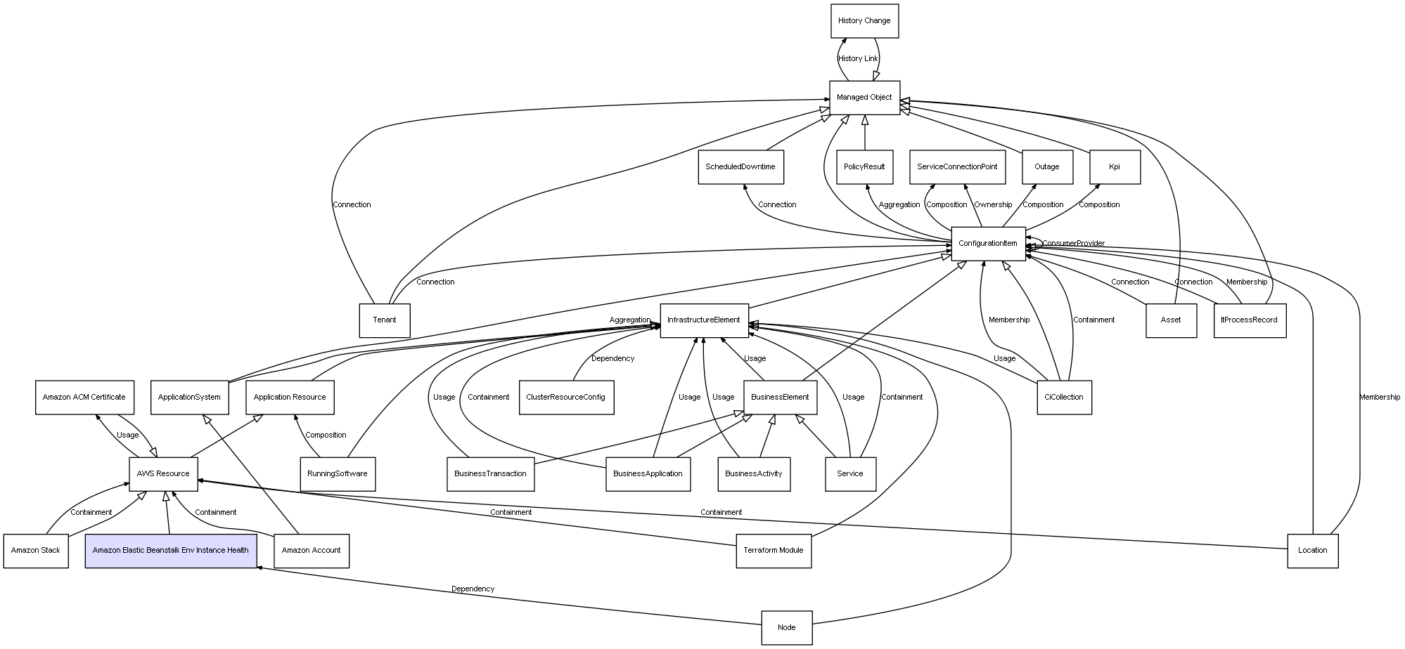 | Node | Amazon Elastic Beanstalk Env Instance Health | Dependency | represents a dependency between 2 objects |