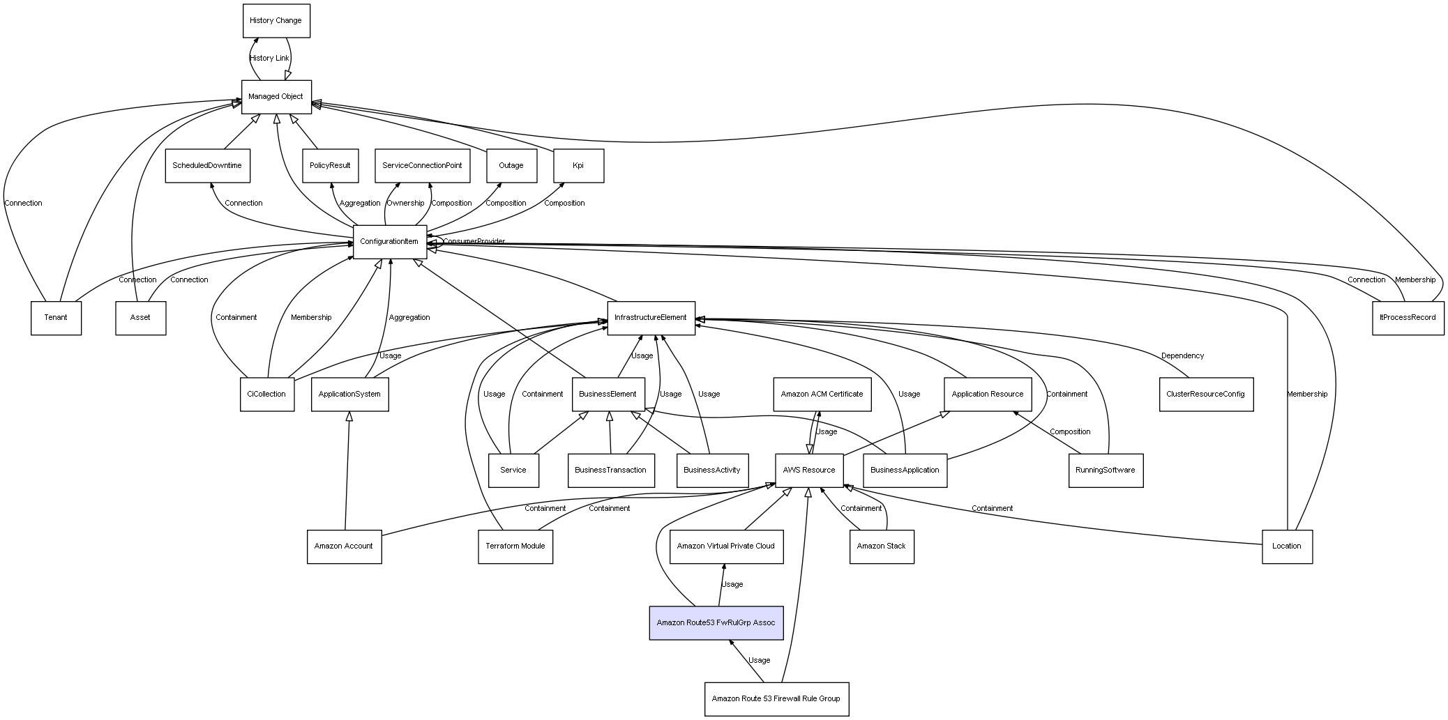 Combined inheritance and relation diagram for Amazon Route53 FwRulGrp Assoc