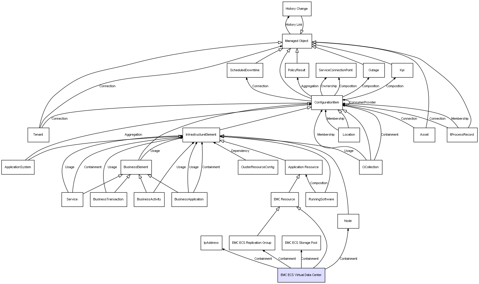 Combined inheritance and relation diagram for EMC ECS Virtual Data Center