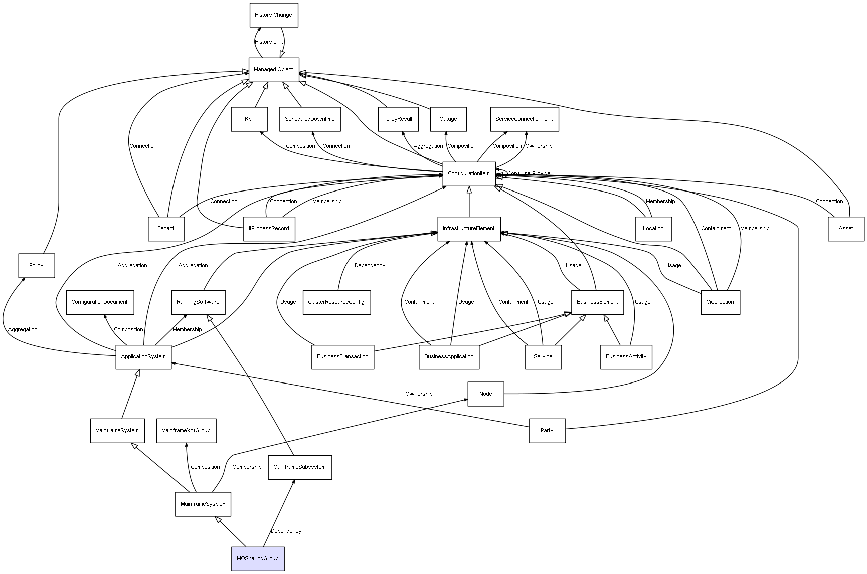 | MQSharingGroup | MainframeSubsystem | Dependency | represents a dependency between 2 objects |
