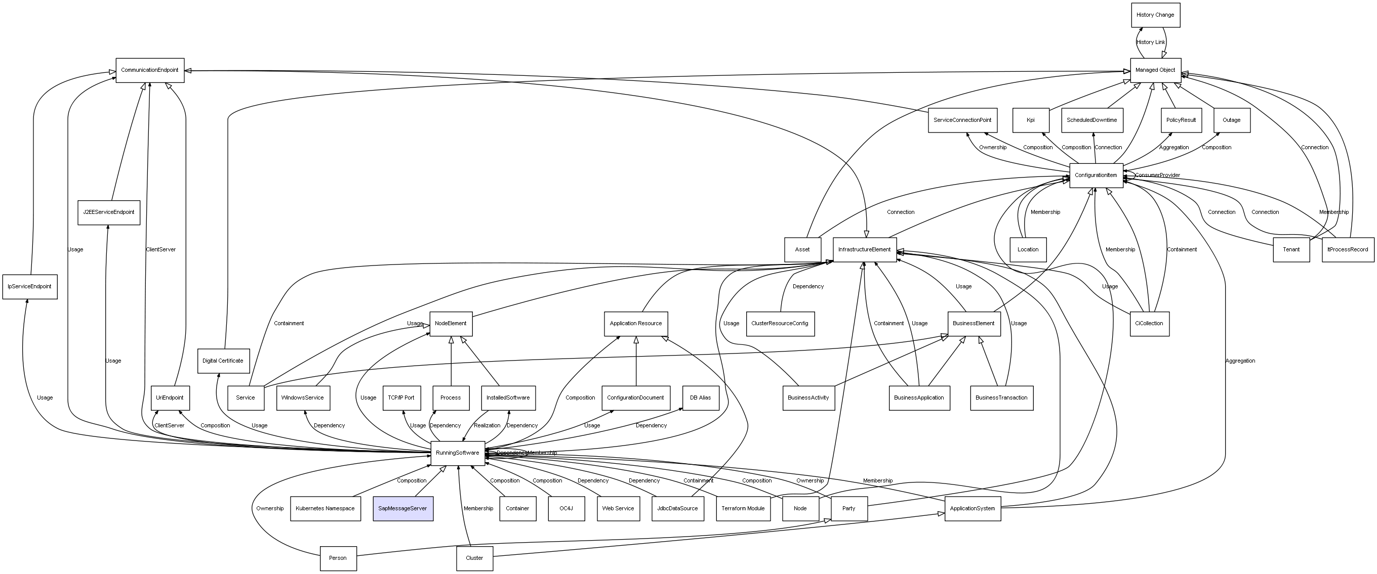 | ConfigurationItem | ServiceConnectionPoint | Composition | Represents a relation between 2 objects where one is contained within the other, and the included object can not exist without its container. Therefore, when the container is deleted, all its contained object will be automatically removed |