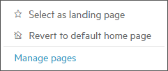 You can use the menu to select or deselect a landing page for a module, and to select a page as your home page, or revert to the default home page.