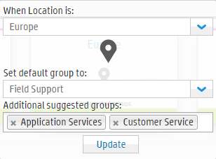 The administrator also defined a business rule in the Request workflow to set the value of the Help desk group field based on this routing definition.