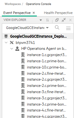 In the View Explorer, select GoogleCloudGCE_Topology, GoogleCloudGCEInstance_Deployment, or GoogleCloudGCEProject_Deployment view from the drop-down list.