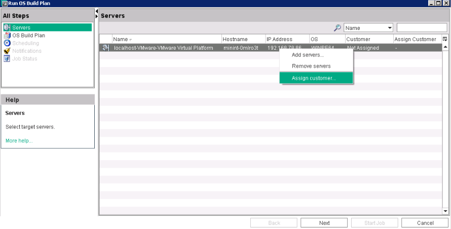 Select Servers under All Steps. Right click one or more servers listed in the Servers view to obtain the Assign customer option.