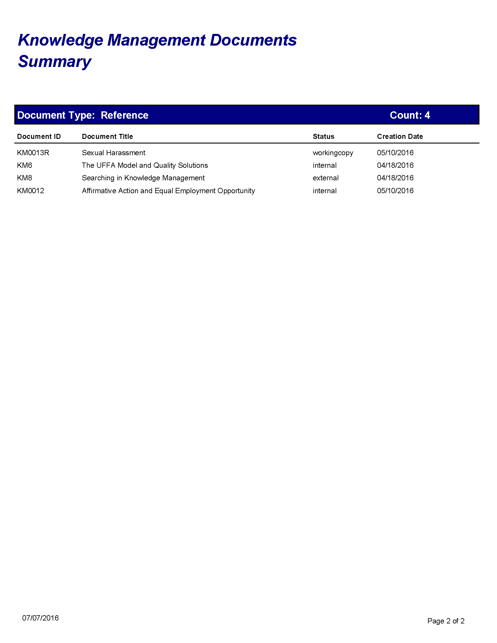 Knowledge Management Documents Summary
