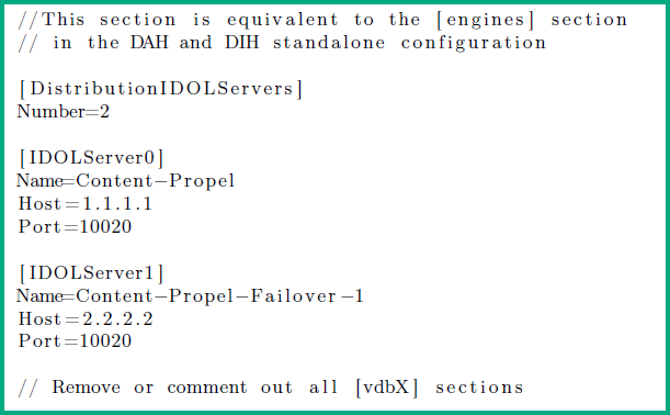 • Each [IDOLServerN] section must be sequential starting at 0.