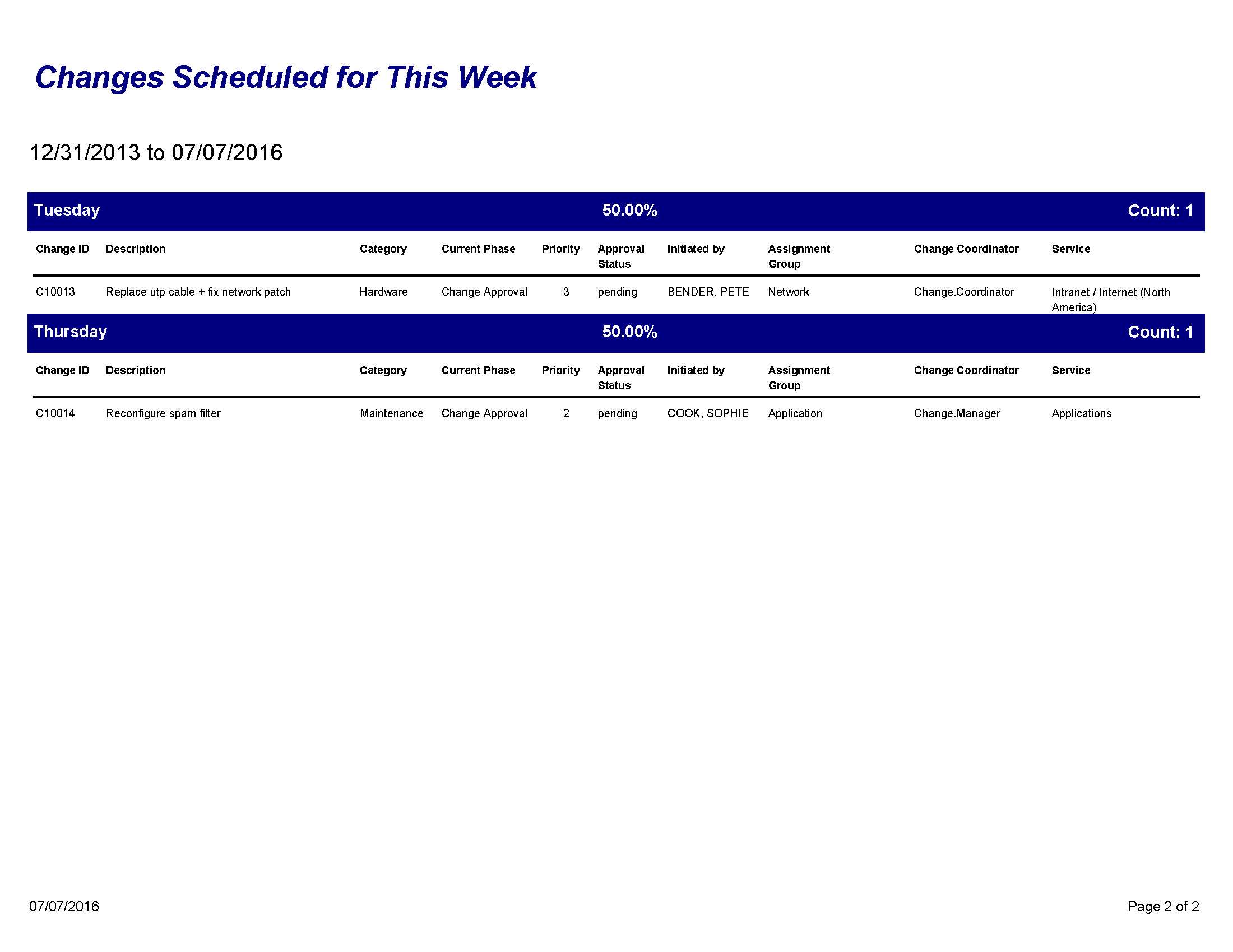 Changes Scheduled for This Week
