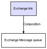 | Exchange link | Exchange Message queue | Composition | Represents a relation between 2 objects where one is contained within the other, and the included object can not exist without its container. Therefore, when the container is deleted, all its contained object will be automatically removed |