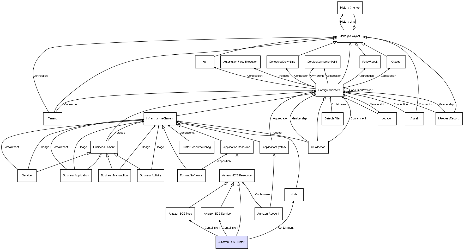 Combined inheritance and relation diagram for Amazon ECS Cluster