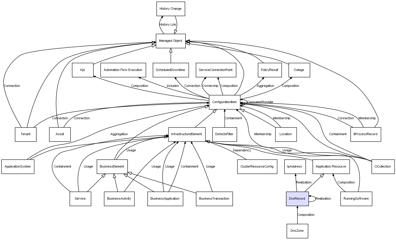 Valid direct incoming and outgoing relations defined on DnsRecord