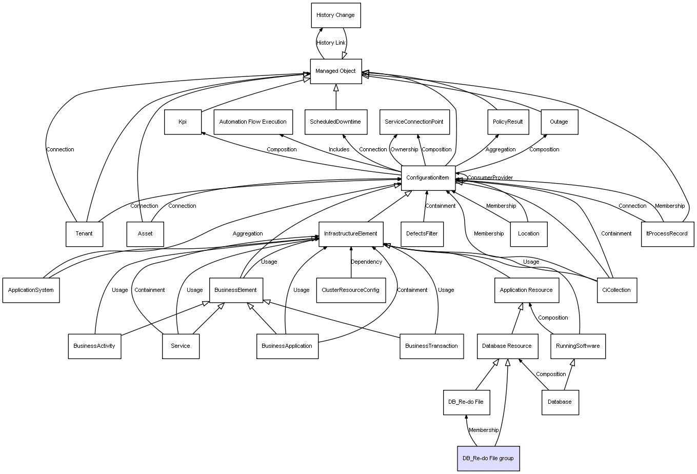 | ConfigurationItem | Outage | Composition | Represents a relation between 2 objects where one is contained within the other, and the included object can not exist without its container. Therefore, when the container is deleted, all its contained object will be automatically removed |