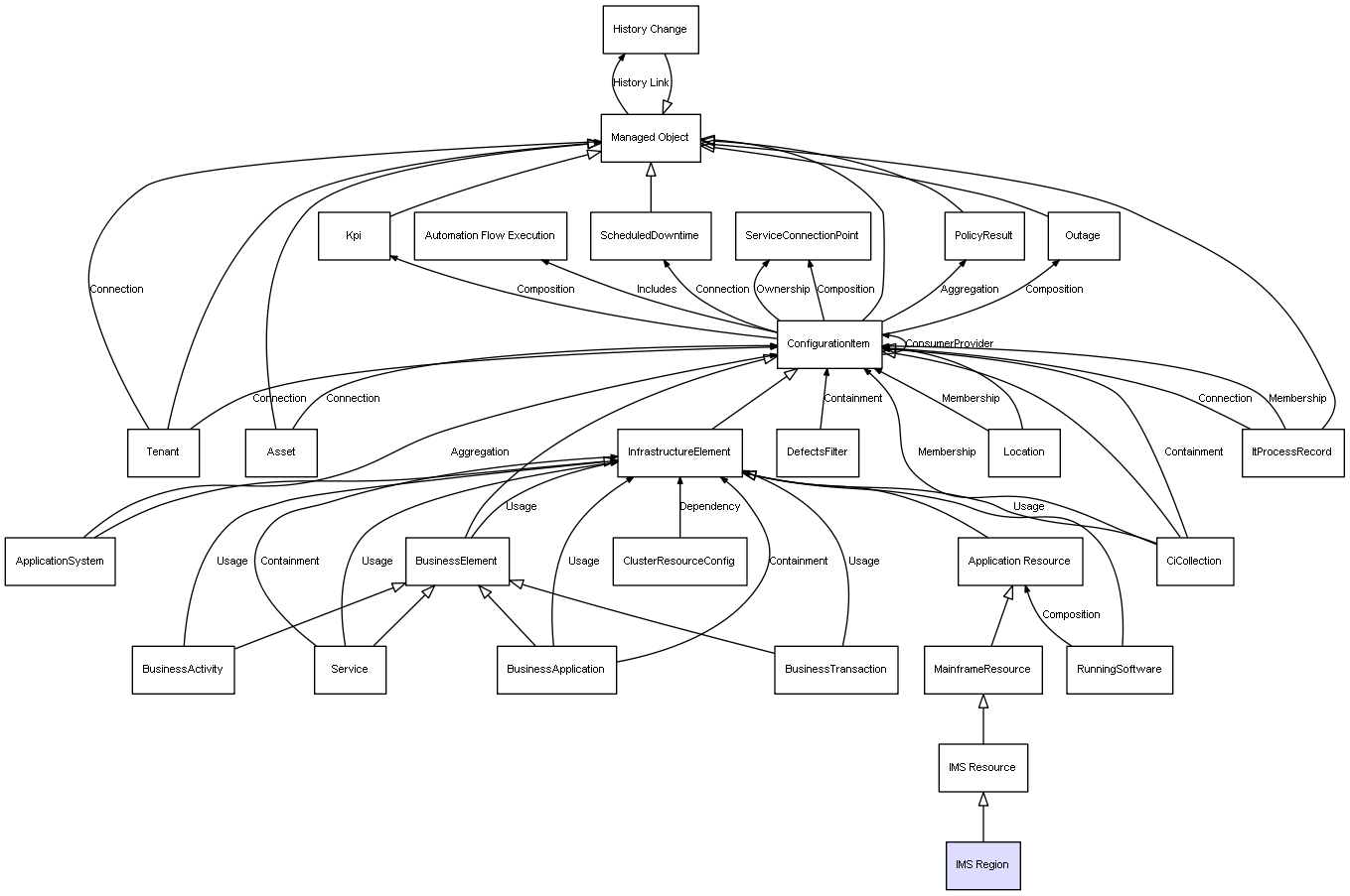 | ConfigurationItem | Outage | Composition | Represents a relation between 2 objects where one is contained within the other, and the included object can not exist without its container. Therefore, when the container is deleted, all its contained object will be automatically removed |