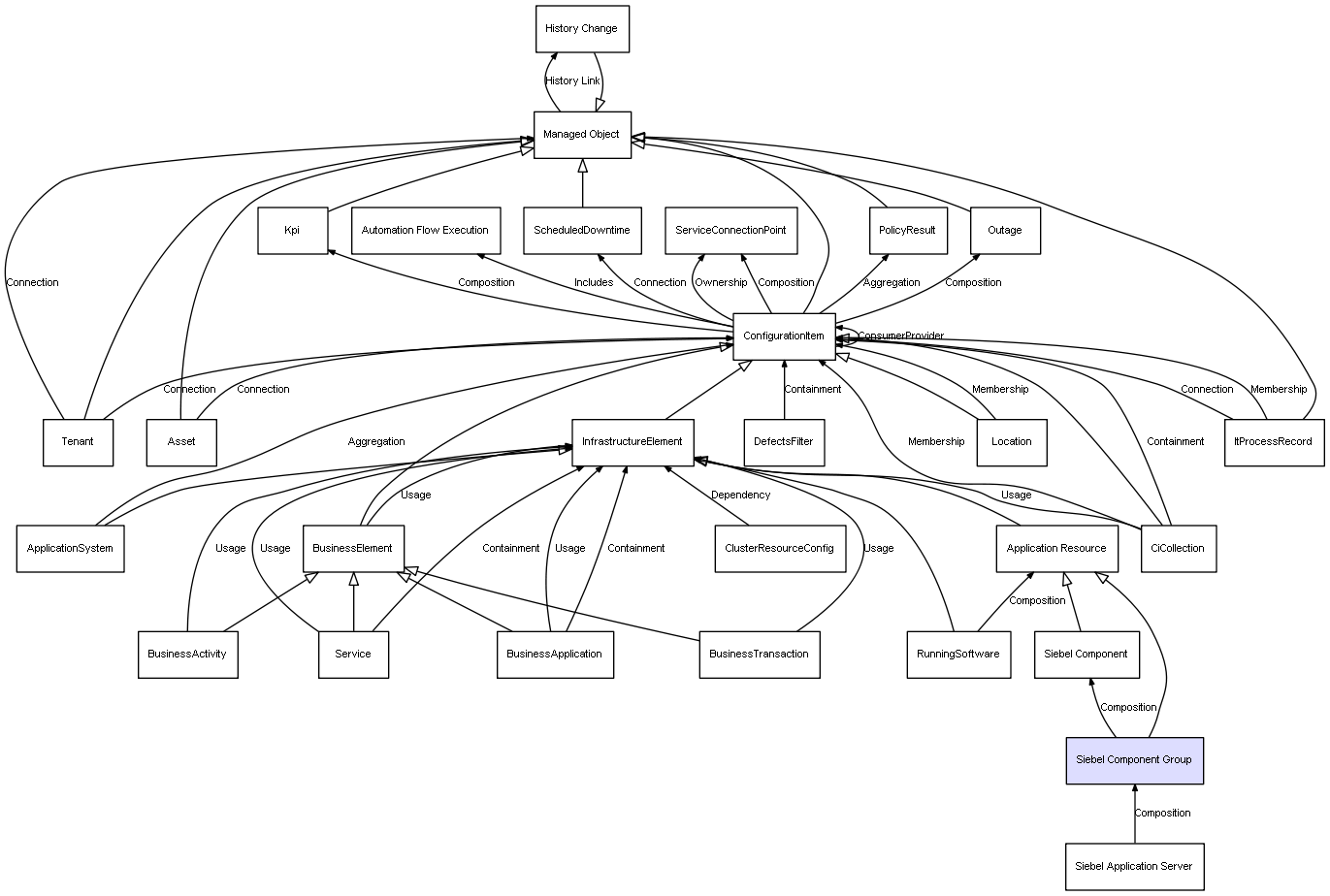 ConfigurationItemOutageCompositionRepresents a relation between 2 objects where one is contained within the other, and the included object can not exist without its container. Therefore, when the container is deleted, all its contained object will be automatically removed
