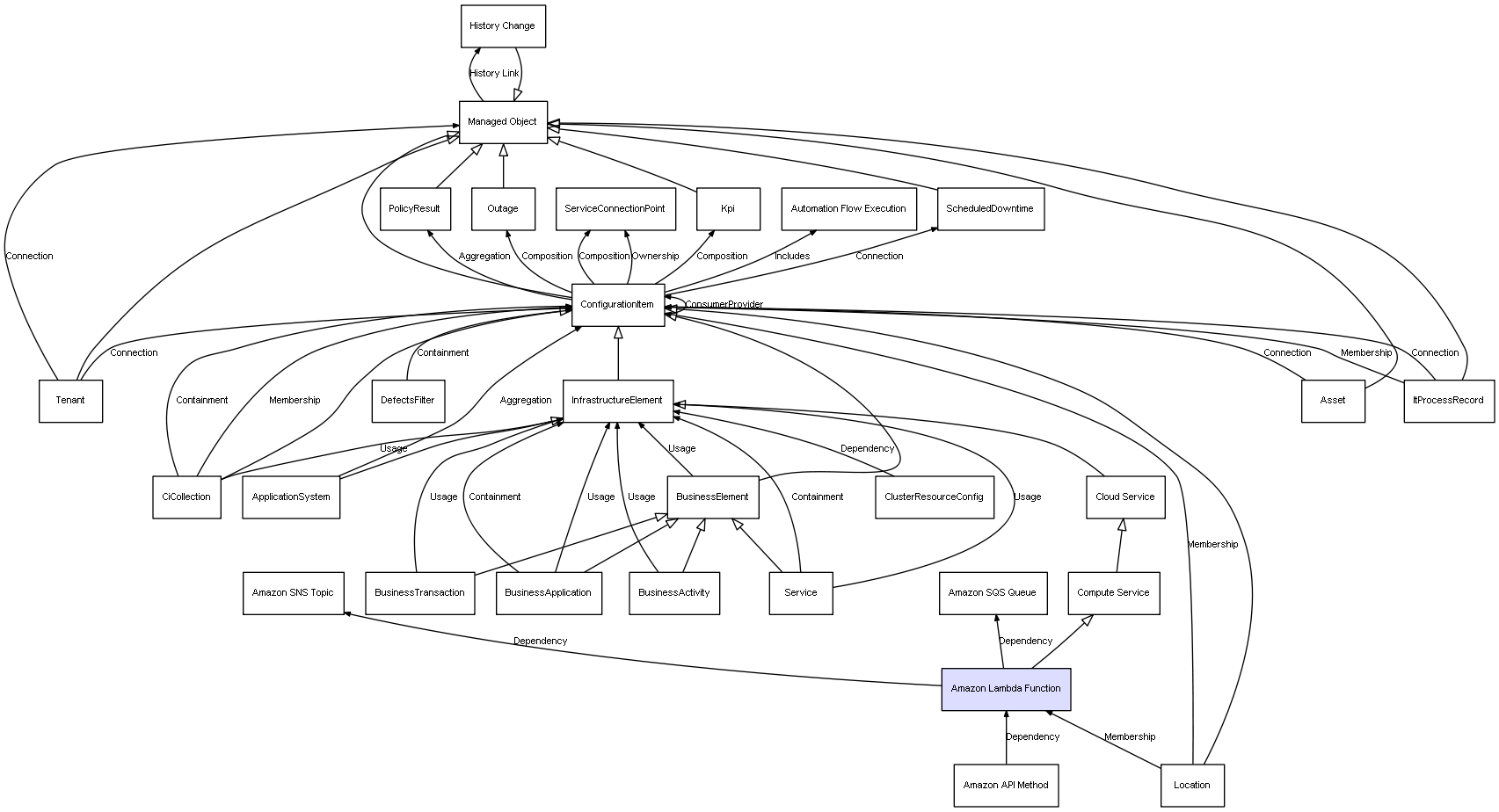 | Amazon Lambda Function | Amazon SNS Topic | Dependency | represents a dependency between 2 objects |