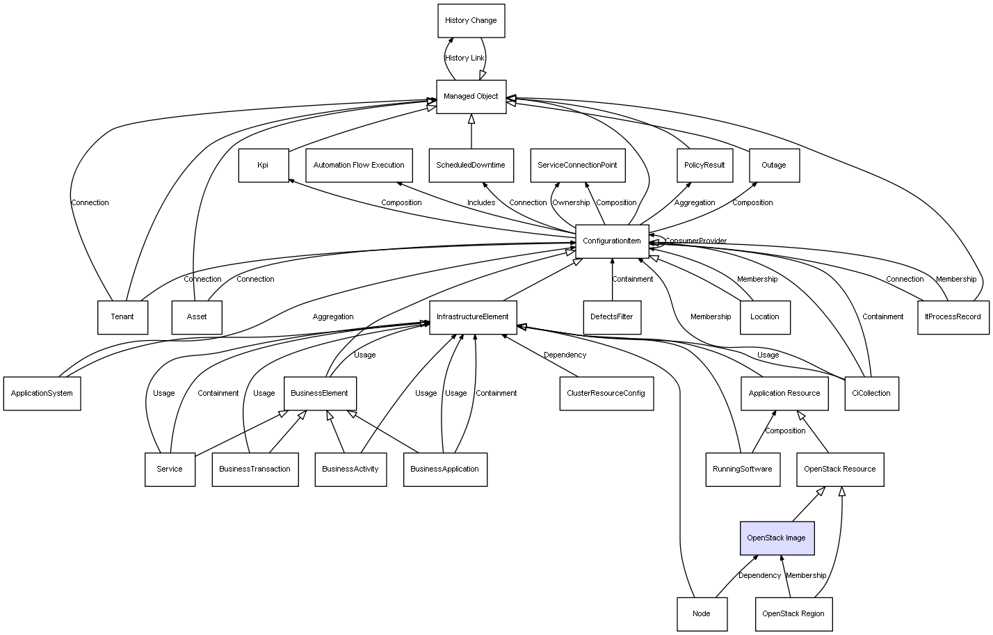 | Node | OpenStack Image | Dependency | represents a dependency between 2 objects |