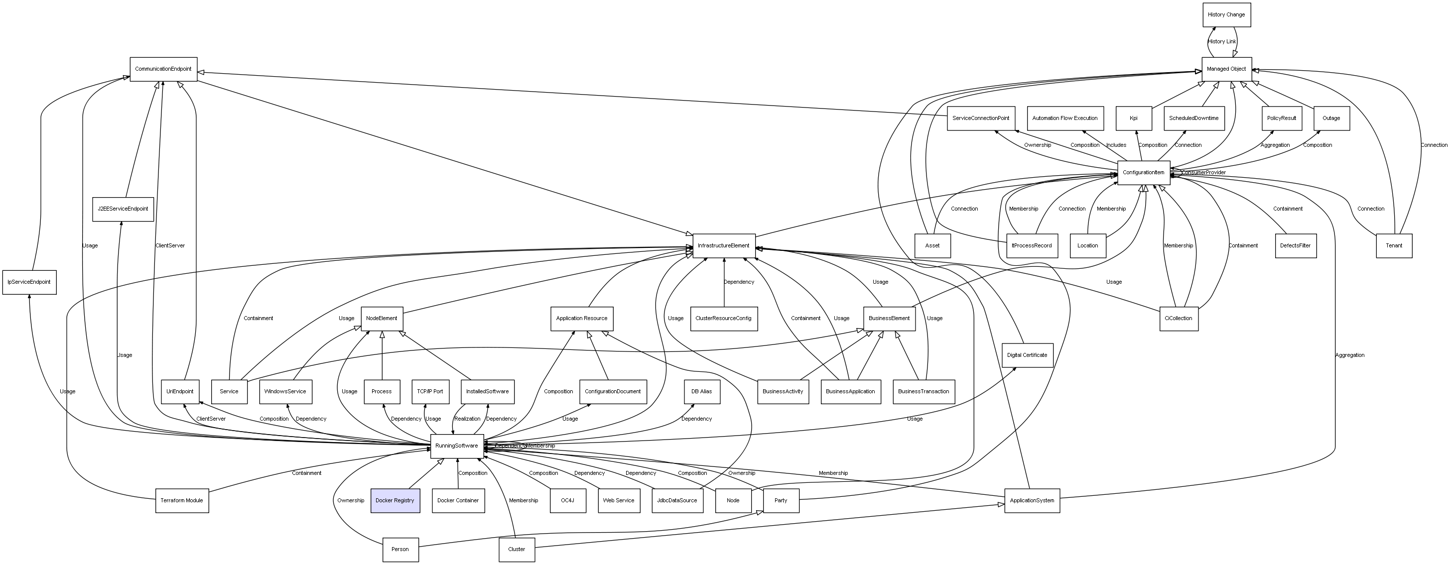 | ConfigurationItem | ServiceConnectionPoint | Composition | Represents a relation between 2 objects where one is contained within the other, and the included object can not exist without its container. Therefore, when the container is deleted, all its contained object will be automatically removed |