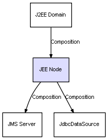 | JEE Node | JMS Server | Composition | Represents a relation between 2 objects where one is contained within the other, and the included object can not exist without its container. Therefore, when the container is deleted, all its contained object will be automatically removed |