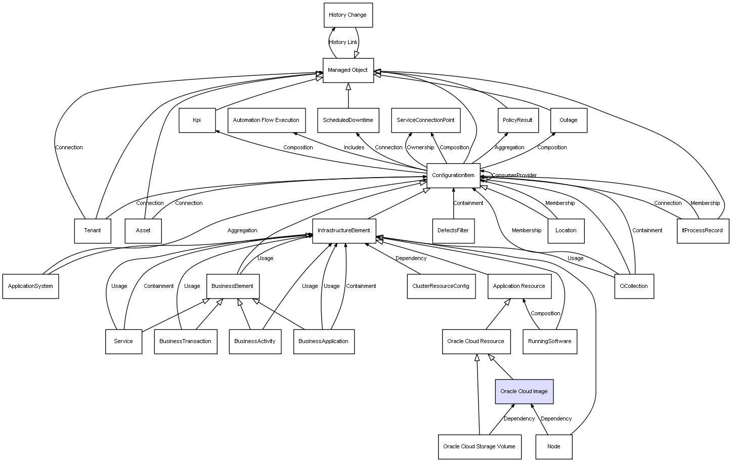 Combined inheritance and relation diagram for Oracle Cloud Image
