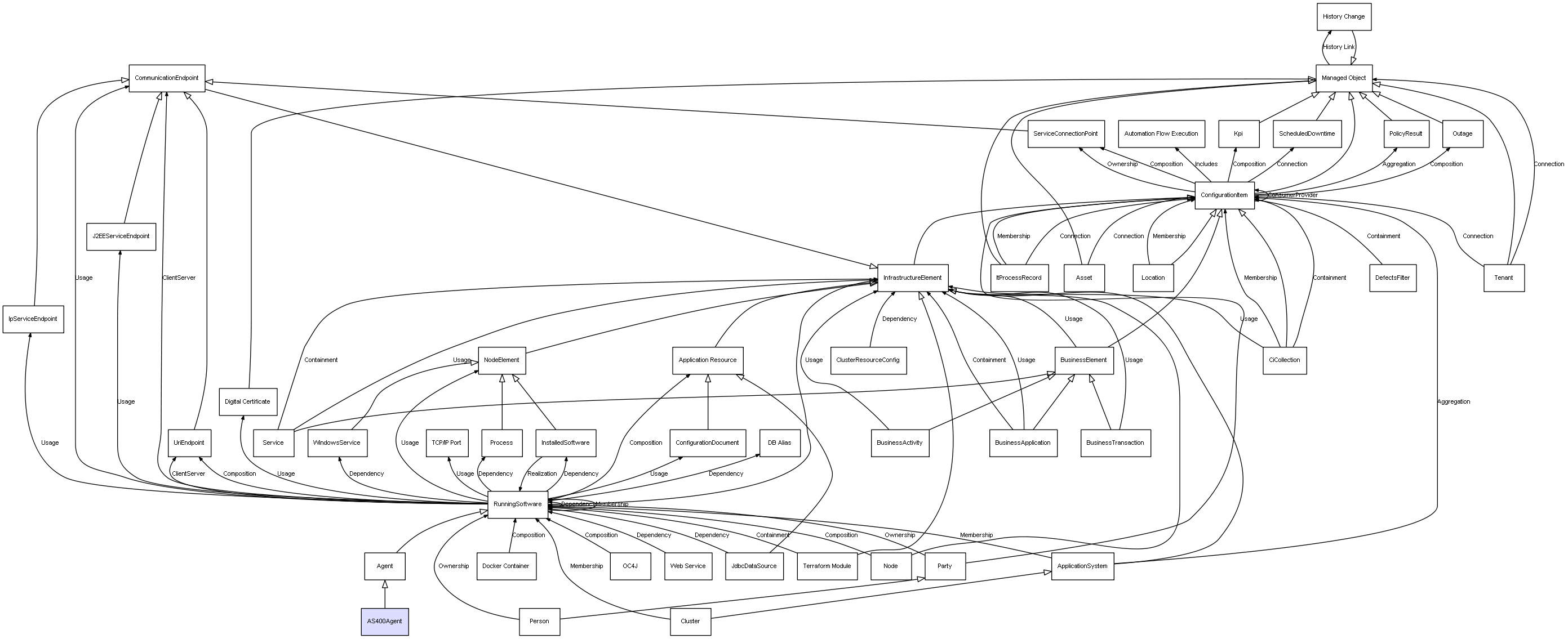 | ConfigurationItem | ServiceConnectionPoint | Composition | Represents a relation between 2 objects where one is contained within the other, and the included object can not exist without its container. Therefore, when the container is deleted, all its contained object will be automatically removed |