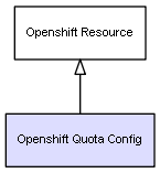 | Kubernetes Namespace | Openshift Quota Config | Composition | Represents a relation between 2 objects where one is contained within the other, and the included object can not exist without its container. Therefore, when the container is deleted, all its contained object will be automatically removed |