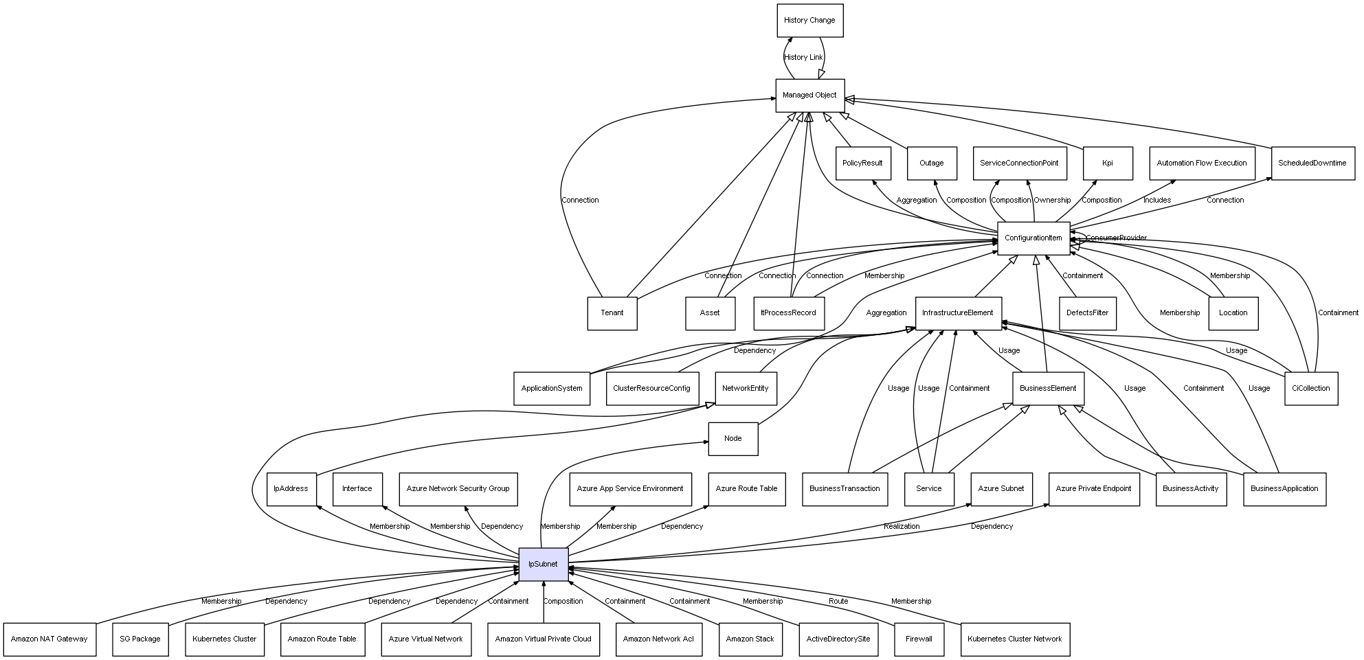 | SG Package | IpSubnet | Dependency | represents a dependency between 2 objects |