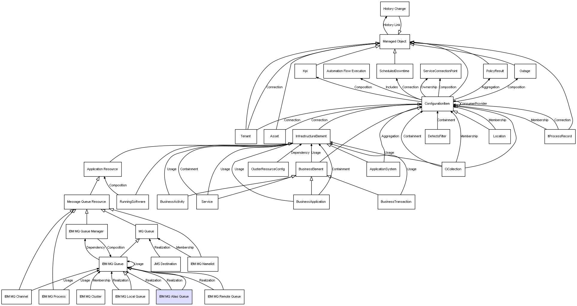 Combined inheritance and relation diagram for IBM MQ Alias Queue