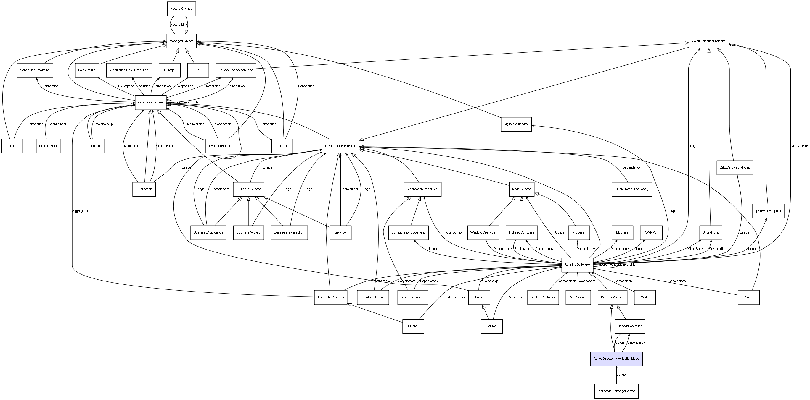 | ConfigurationItem | ServiceConnectionPoint | Composition | Represents a relation between 2 objects where one is contained within the other, and the included object can not exist without its container. Therefore, when the container is deleted, all its contained object will be automatically removed |