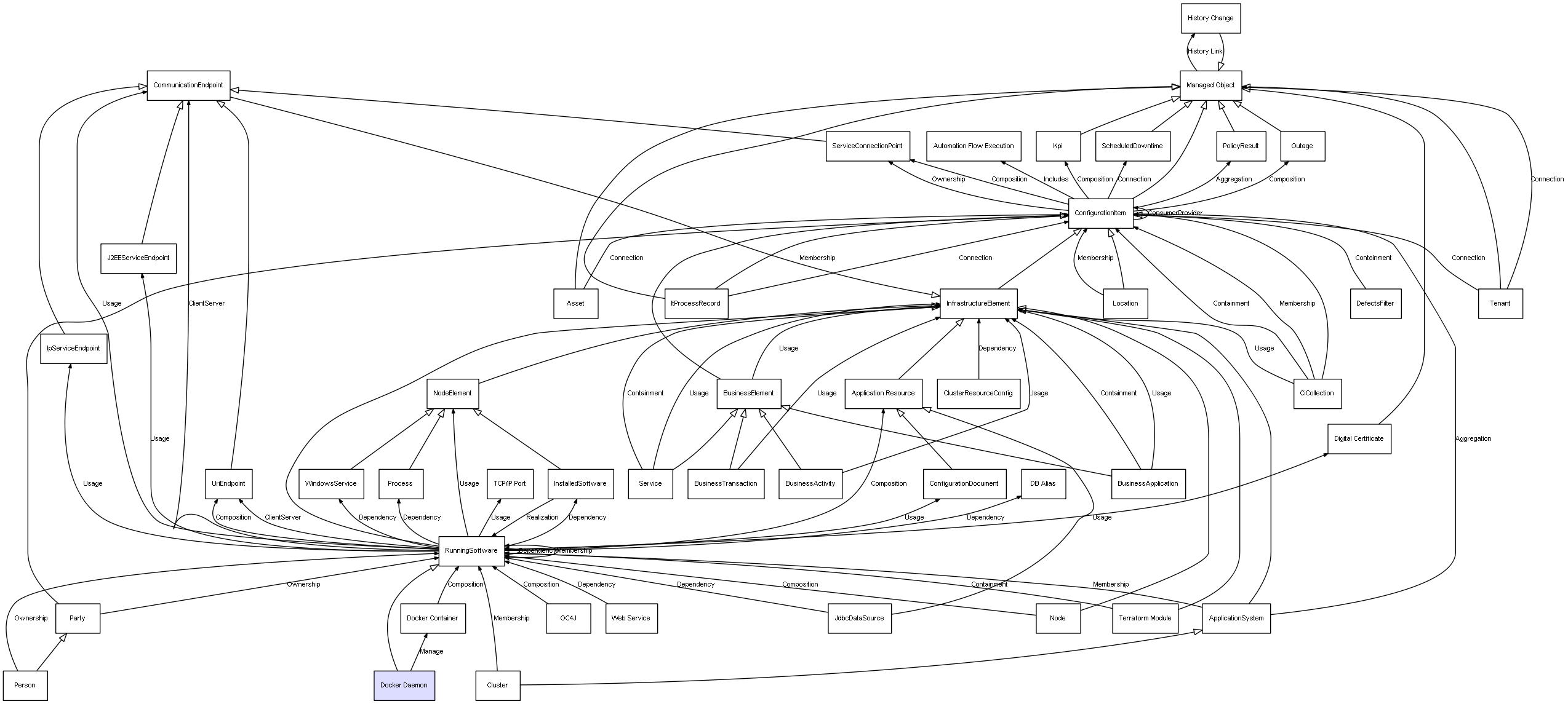 | ConfigurationItem | ServiceConnectionPoint | Composition | Represents a relation between 2 objects where one is contained within the other, and the included object can not exist without its container. Therefore, when the container is deleted, all its contained object will be automatically removed |