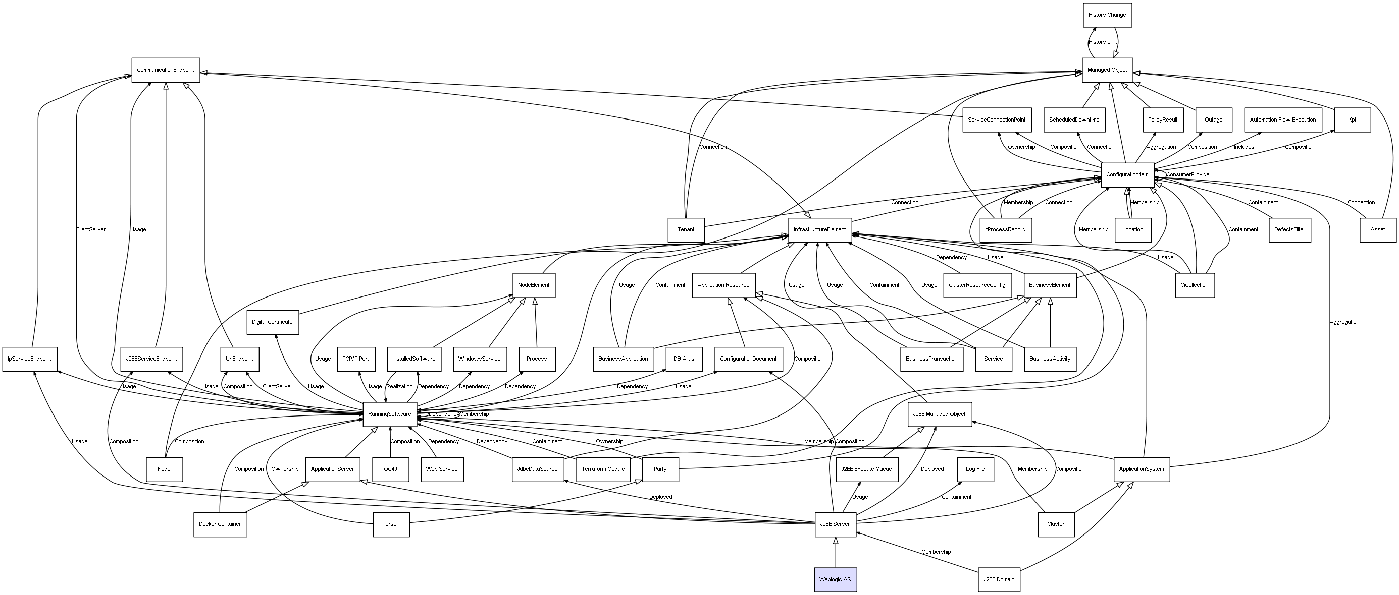 Combined inheritance and relation diagram for Weblogic AS