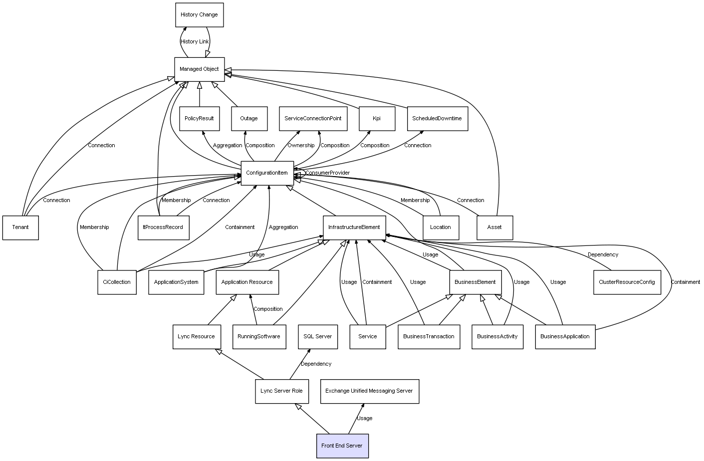 | Lync Server Role | SQL Server | Dependency | represents a dependency between 2 objects |