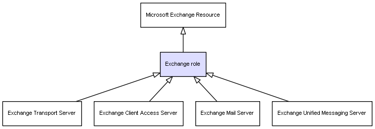 | Description | Role of exchange server in global scope. One exchange server can have several roles. Server roles allow an administrator to split the functions of an Exchange server and place each role, or a combination of roles, on different servers in the organization. This type is a common super-type for specific roles, which are: - Edge Transport - Hub Transport - Client Access - Mailbox - Unified Messaging |