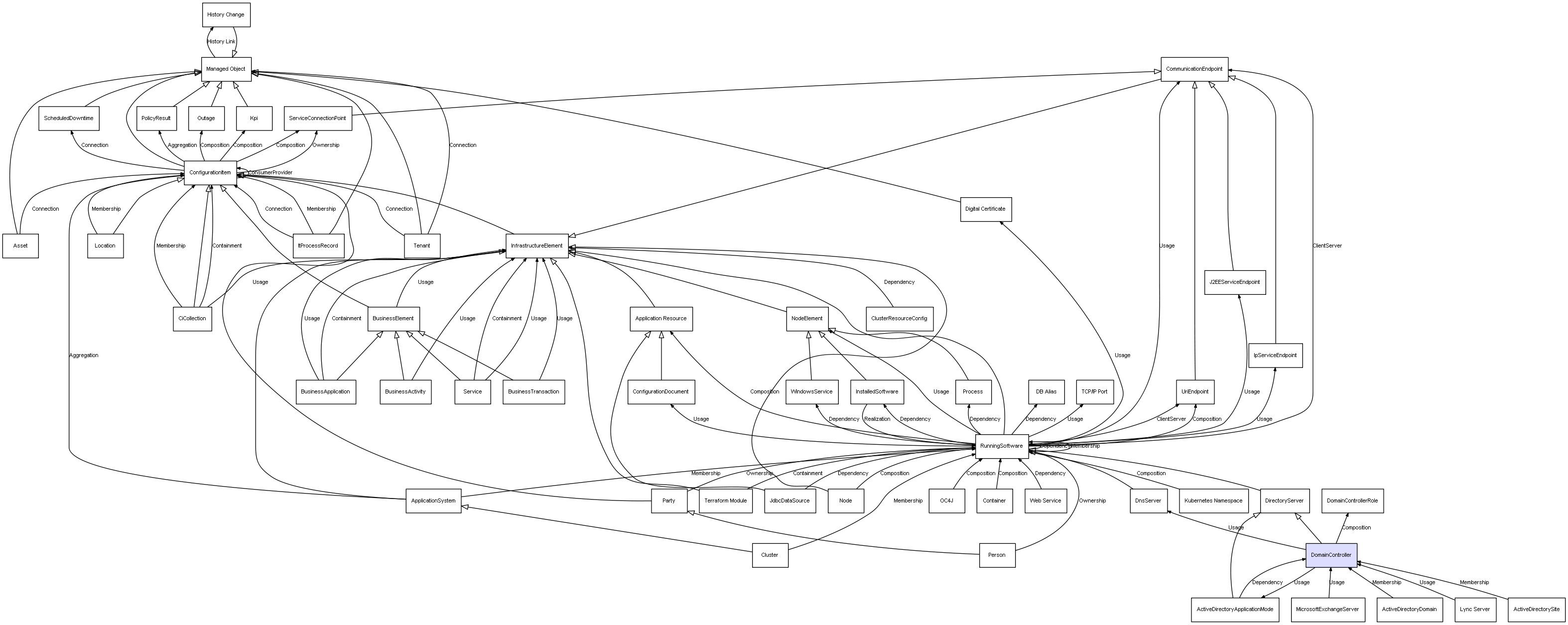 | ConfigurationItem | ServiceConnectionPoint | Composition | Represents a relation between 2 objects where one is contained within the other, and the included object can not exist without its container. Therefore, when the container is deleted, all its contained object will be automatically removed |