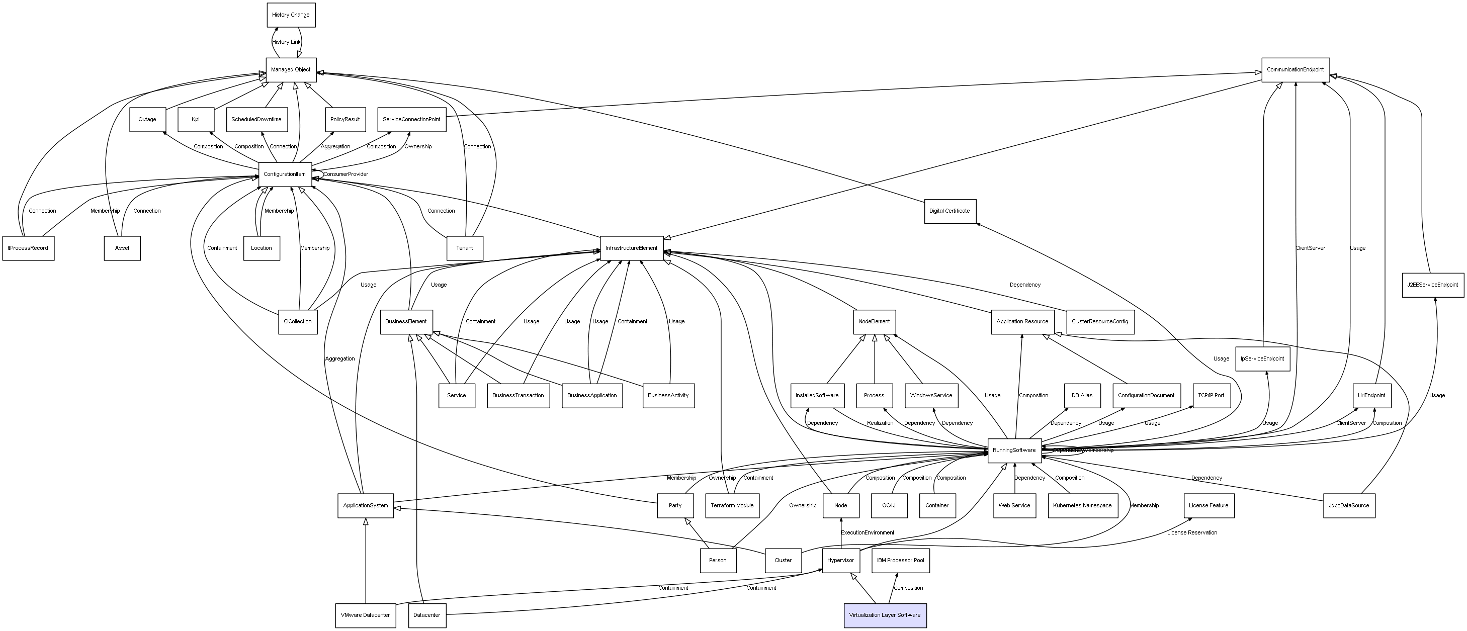 Combined inheritance and relation diagram for Virtualization Layer Software