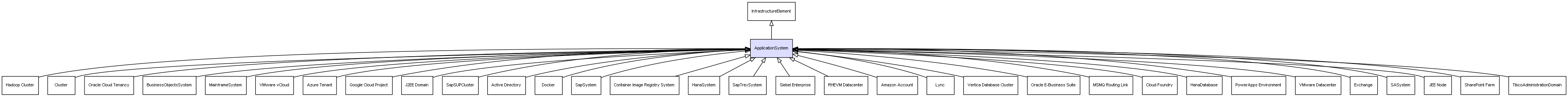 | Description | The super class of complex systems like ERP, CRM or a Call-Center. These systems usually encompass a lot of RunningSoftware and maybe also Nodes. The complex system and its components are discoverable: the user doesn't need to manually define the scope like in the case of Application. From a management perspective all the components are managed as a single system, e.g. the user can define an authorization rule and it is enforced by all the components of the complex system. |