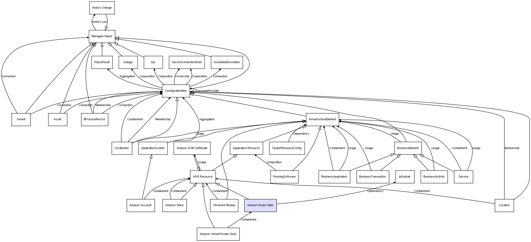 | Amazon Route Table | IpSubnet | Dependency | represents a dependency between 2 objects |