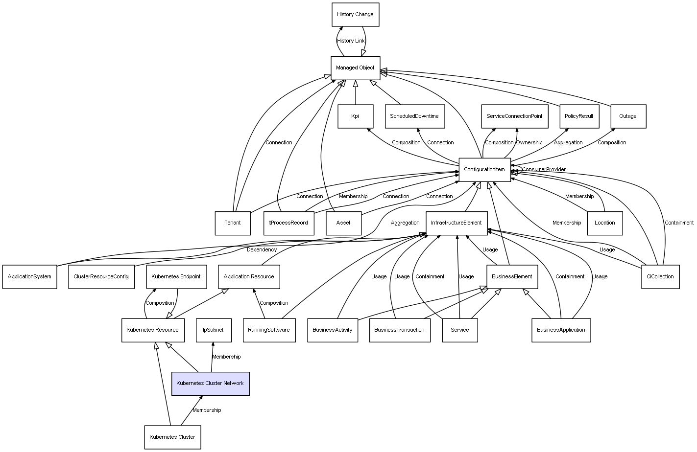 Combined inheritance and relation diagram for Kubernetes Cluster Network