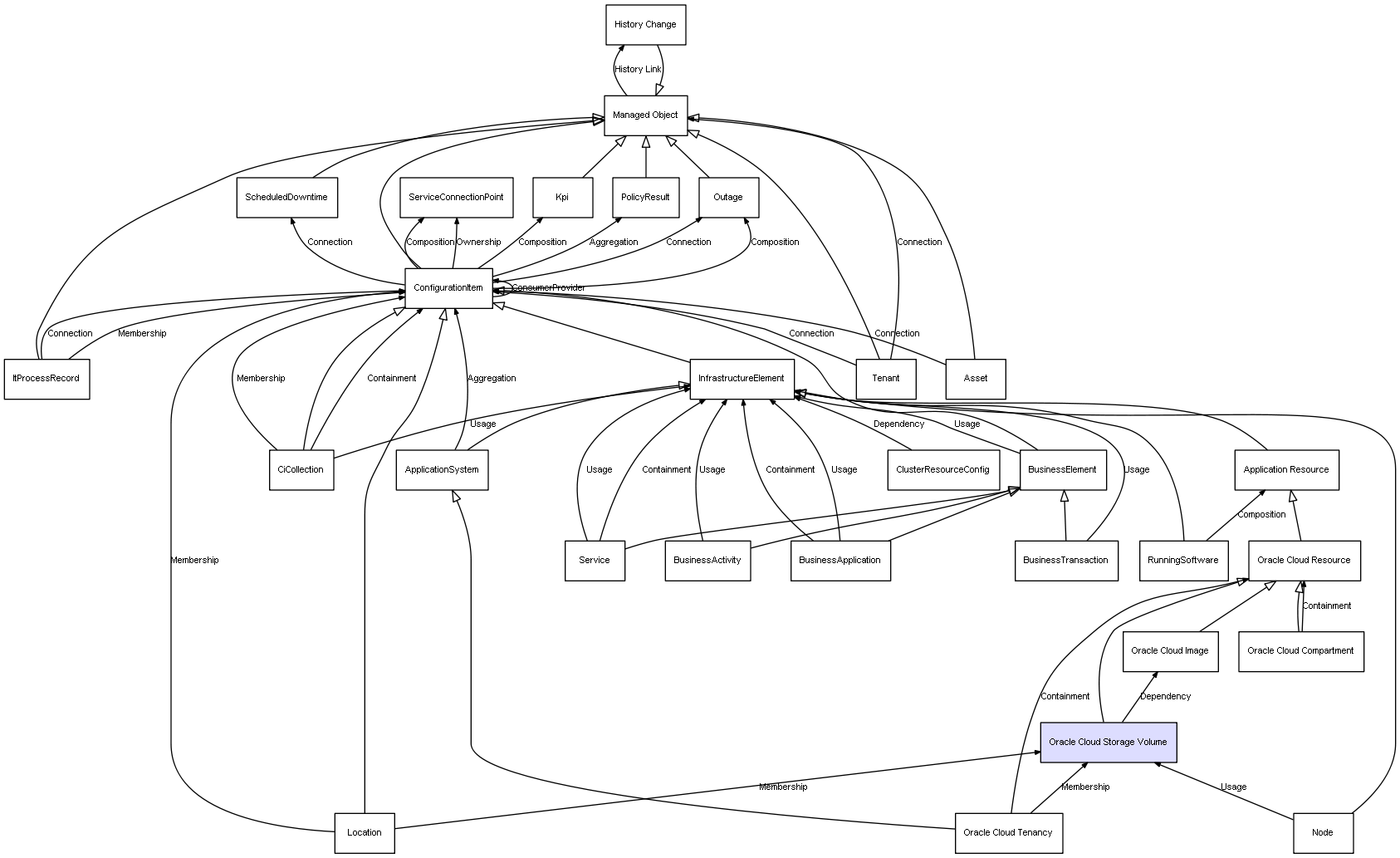 | Oracle Cloud Storage Volume | Oracle Cloud Image | Dependency | represents a dependency between 2 objects |