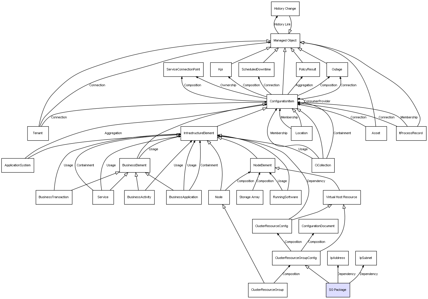 | SG Package | IpSubnet | Dependency | represents a dependency between 2 objects |