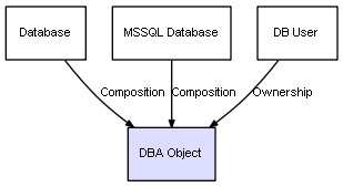 MSSQL Database | DBA Object | Composition | Represents a relation between 2 objects where one is contained within the other, and the included object can not exist without its container. Therefore, when the container is deleted, all its contained object will be automatically removed |