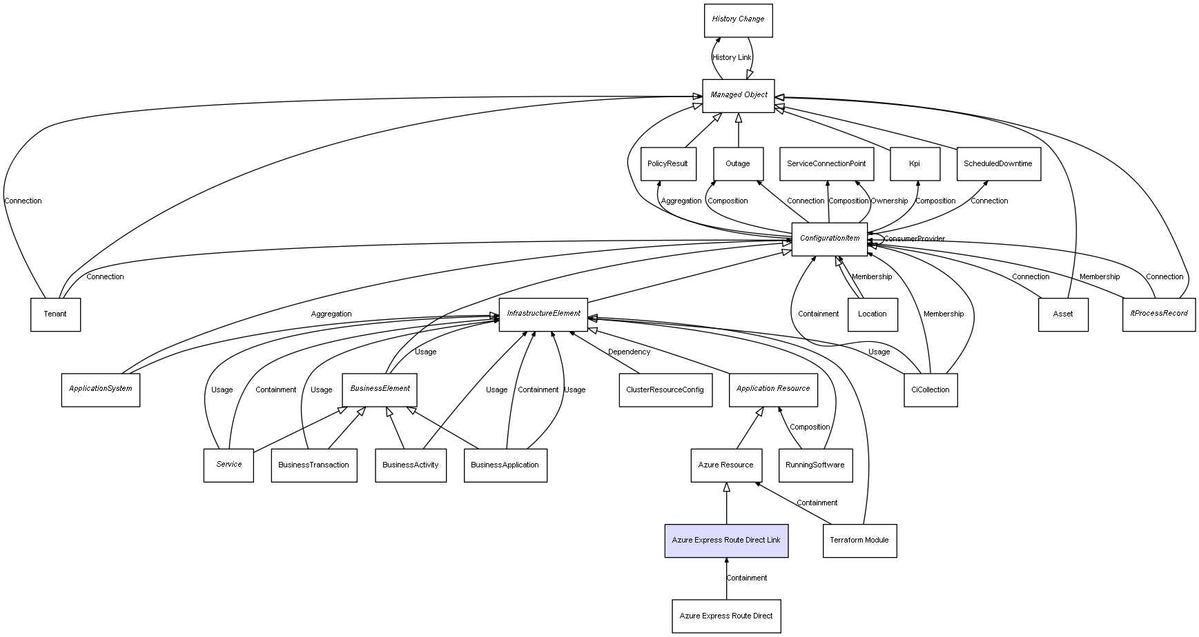 Combined inheritance and relation diagram for Azure Express Route Direct Link