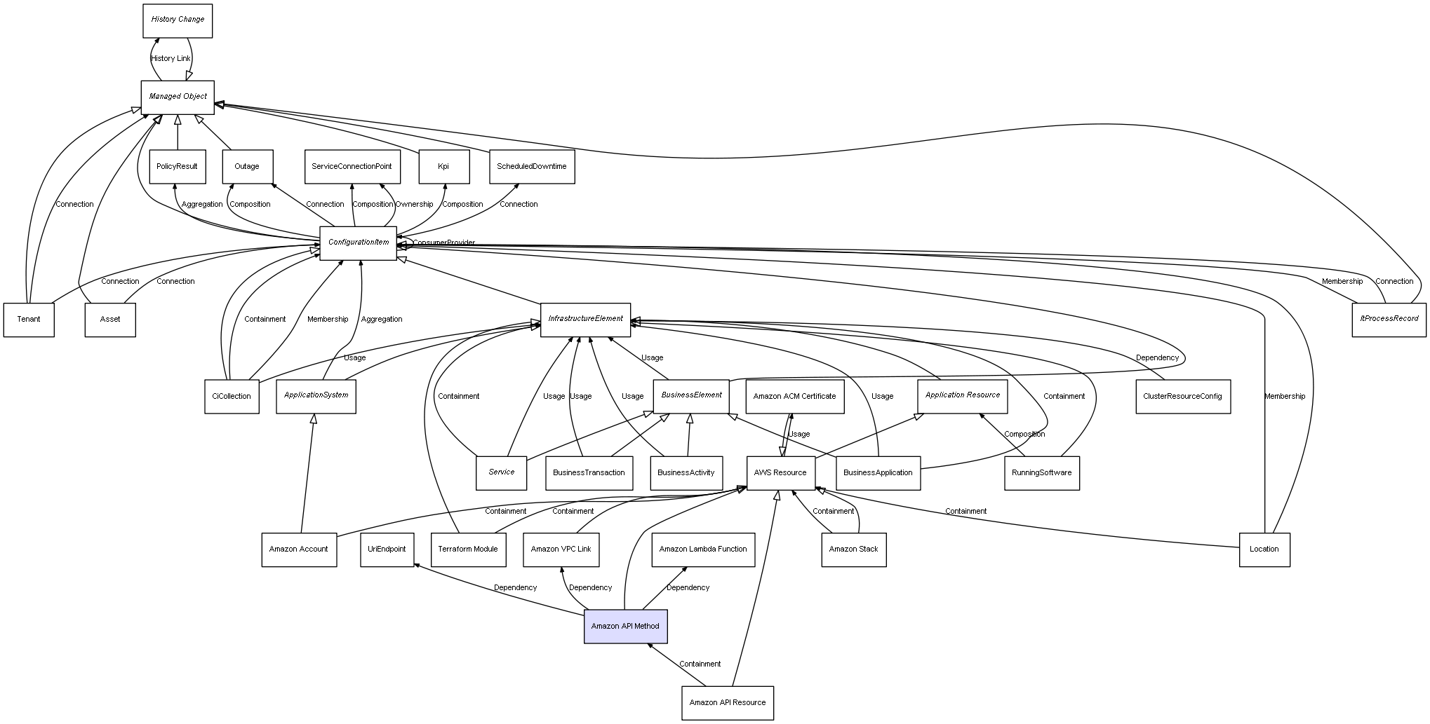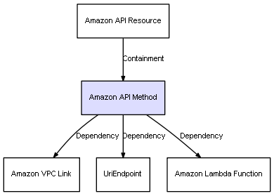 | Amazon API Method | Amazon VPC Link | Dependency | represents a dependency between 2 objects |