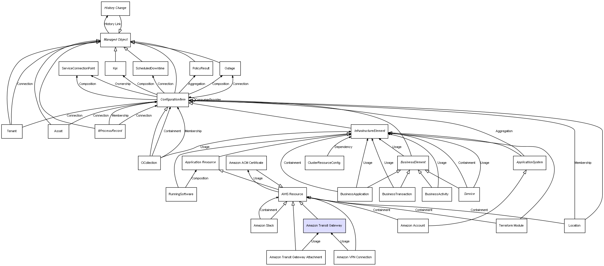 Combined inheritance and relation diagram for Amazon Transit Gateway