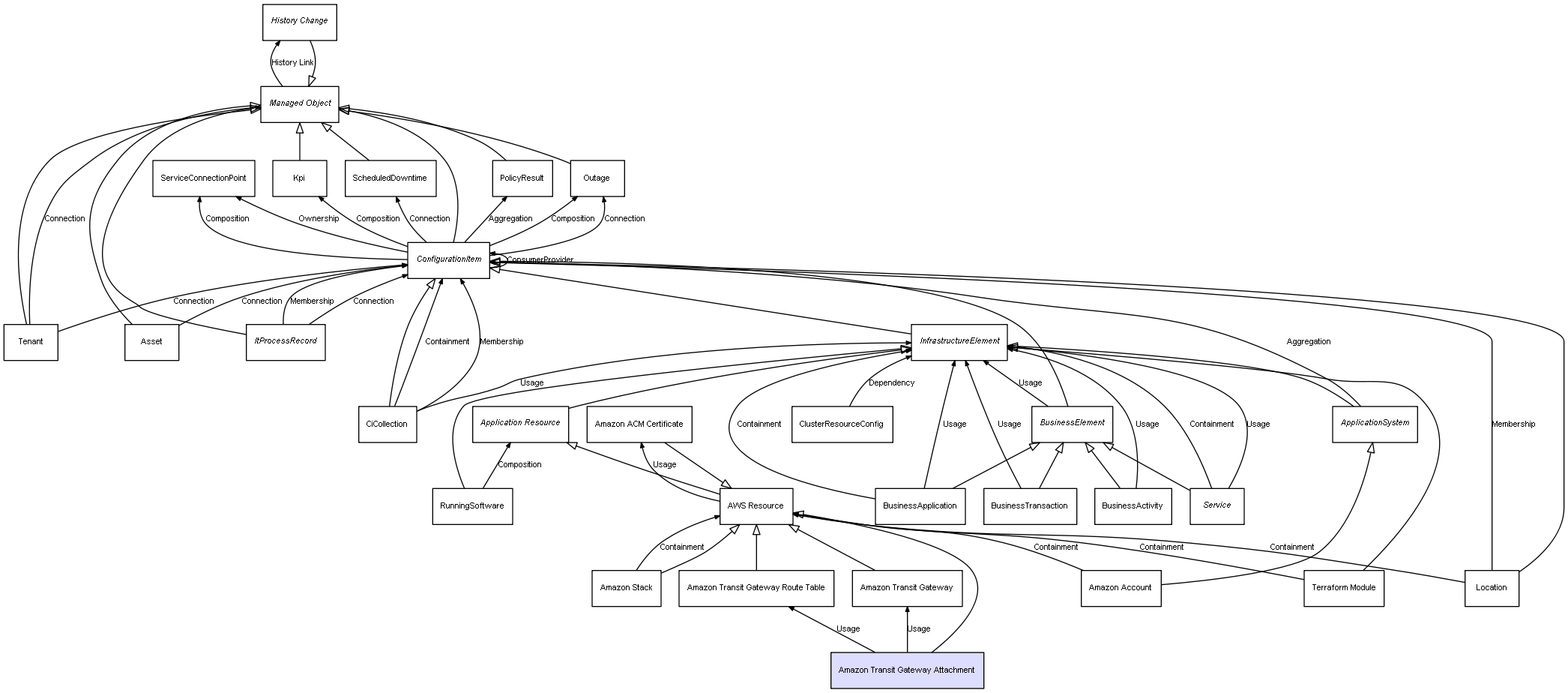 | Amazon Transit Gateway Attachment | Amazon Transit Gateway | Usage | Monitor system Relationships |