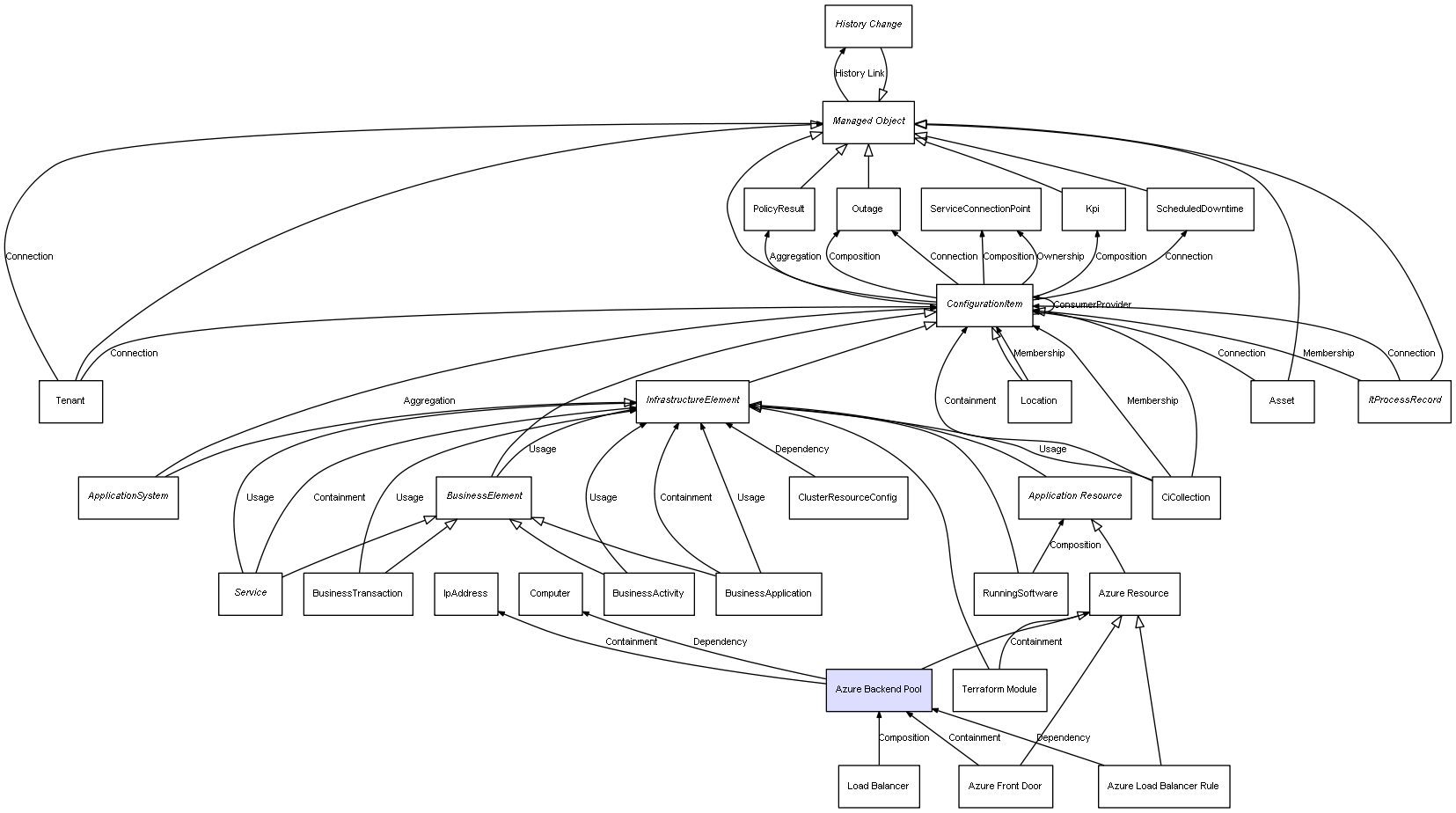 | Azure Backend Pool | Computer | Dependency | represents a dependency between 2 objects |