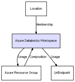 | Azure Resource Group | Azure Databricks Workspace | Composition | Represents a relation between 2 objects where one is contained within the other, and the included object can not exist without its container. Therefore, when the container is deleted, all its contained object will be automatically removed |