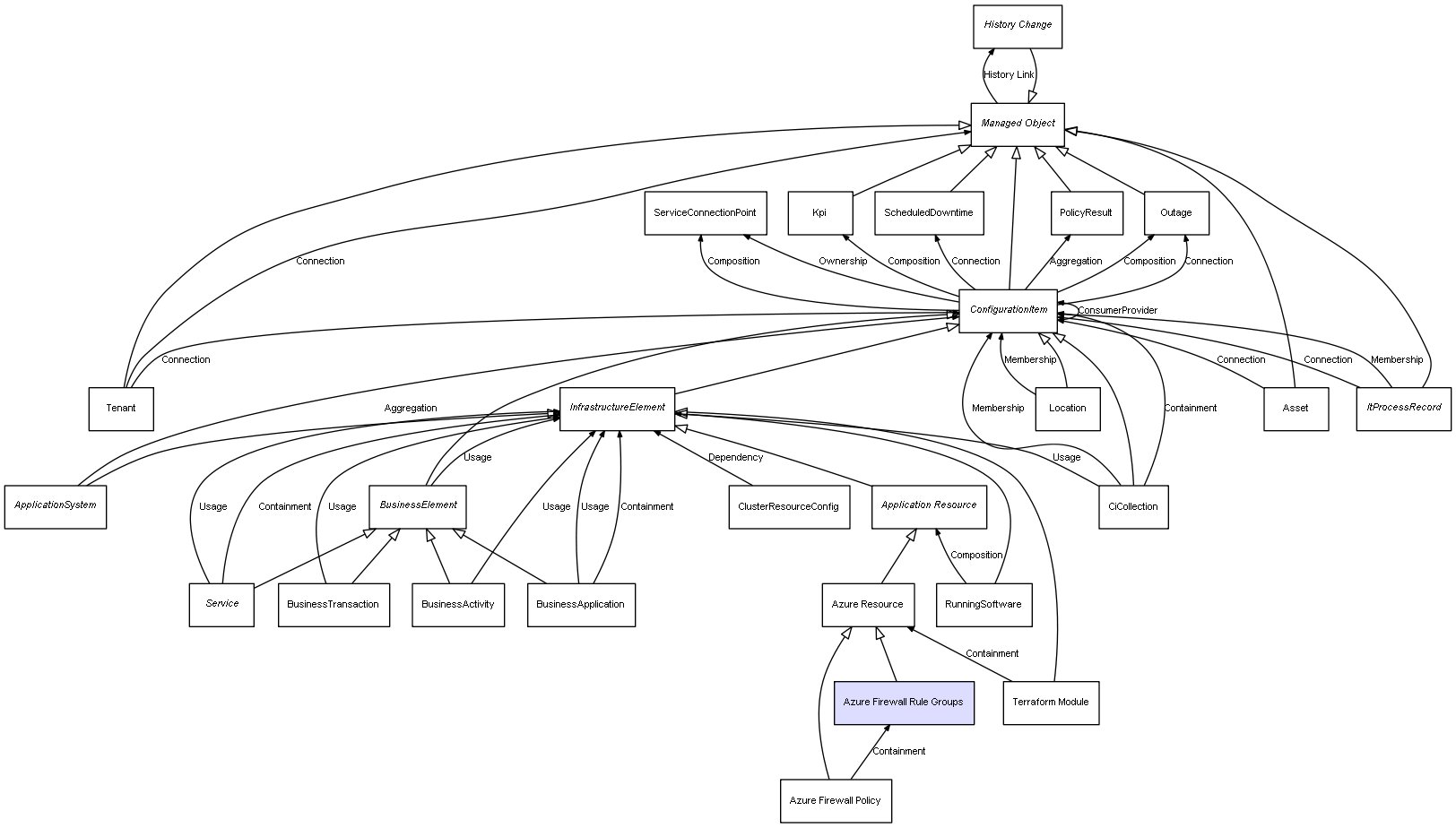 | CiCollection | InfrastructureElement | Usage | Monitor system Relationships |