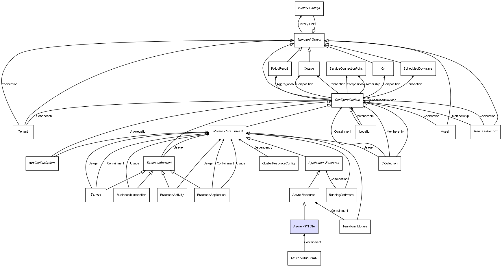 Combined inheritance and relation diagram for Azure VPN Site