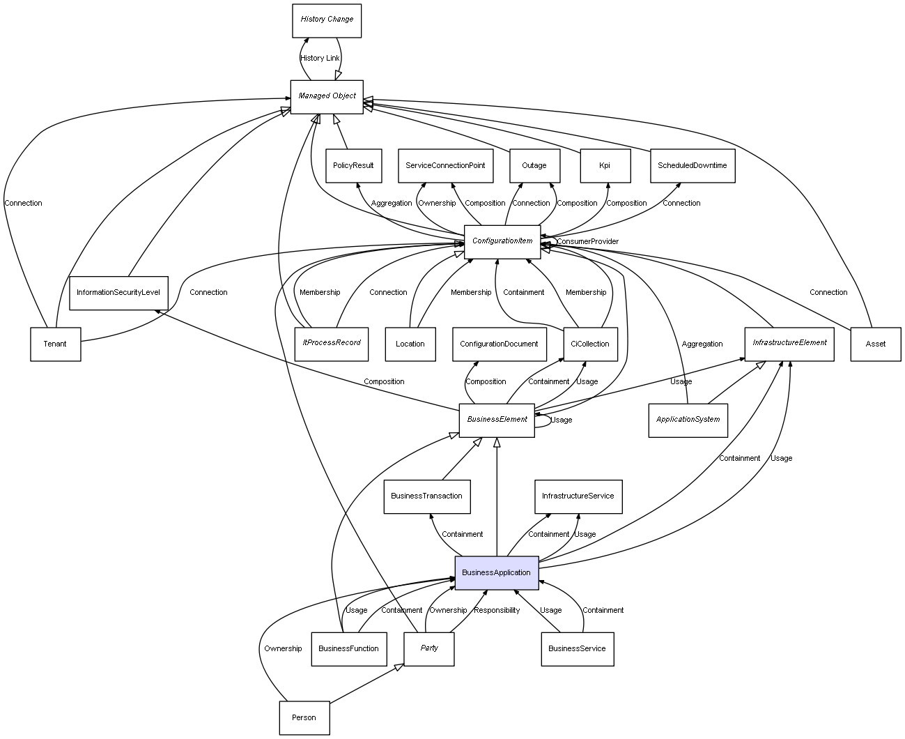| BusinessApplication | InfrastructureService | Containment | |
