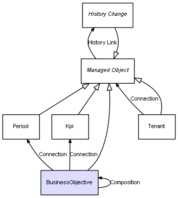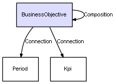 | BusinessObjective | BusinessObjective | Composition | Represents a relation between 2 objects where one is contained within the other, and the included object can not exist without its container. Therefore, when the container is deleted, all its contained object will be automatically removed |